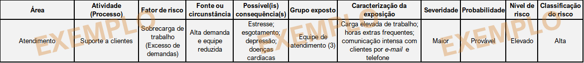 Importante: somente devem ser considerados fatores relacionados ao trabalho — aspectos da vida pessoal do trabalhador que podem afetar sua saúde mental não integram essa análise.