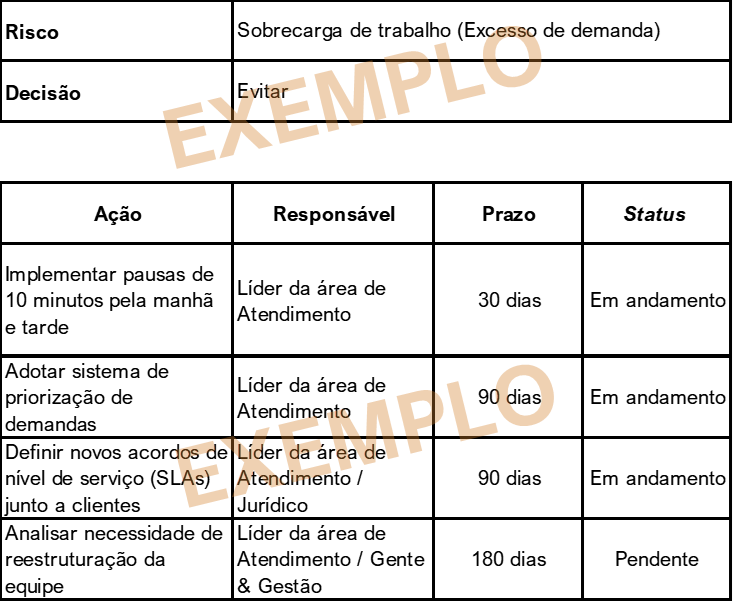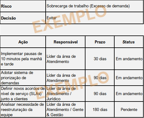 Para este caso, poderia ser definido um plano de ação da seguinte forma: